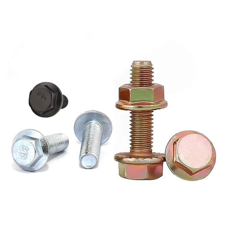 Icke-standard kolstål blå vit zinkpläterad platt huvud sexkantsskruvVill du köpa flänsad sexkantsbult av hög kvalitet och rabatt? Våra kära kunder över hela världen, du är välkommen att köpa det från vår fabrik i Kina. Flänsade sexkantsbultar är höghållfasta fästelement som kombinerar ett sexkantigt huvud med en integrerad fläns. Deras unika design integrerar flänsen och bulthuvudet i en enda enhet, vilket eliminerar behovet av separata brickor och säkerställer en jämn lastfördelning, förhindrar lossning och avsevärt förbättrar tätningen och stabiliteten i anslutningen.